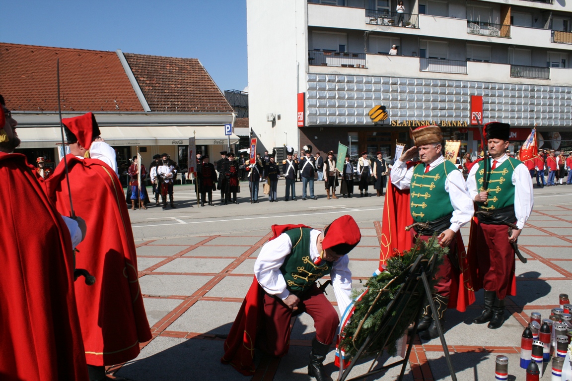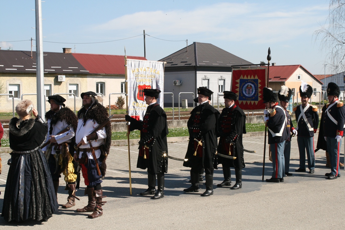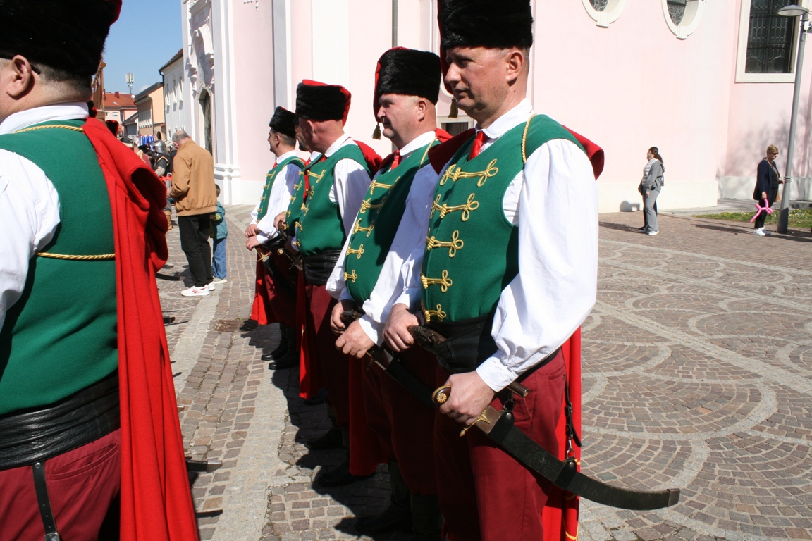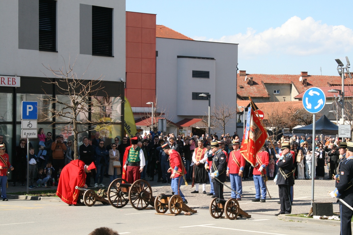 Povorka je potom nastavila prema Trgu svete Terezije gdje je gradonačelnik Grada Požege prof. dr. sc. Borislav Miličević izvršio smotru povijesnih postrojbi. U ime udruge prijavak je gradonačelniku predao natporučnik Vladimir Potnar. Nakon smotre odjeknuli su pucnjevi iz topova, mužara i kubura koji su dodatno dočarali povijesni ugođaj i oduševili okupljene građane.
